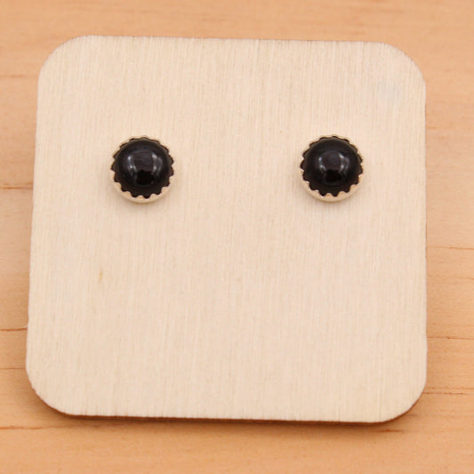 #3100 Onyx Studs with Serrated Setting - 6mm