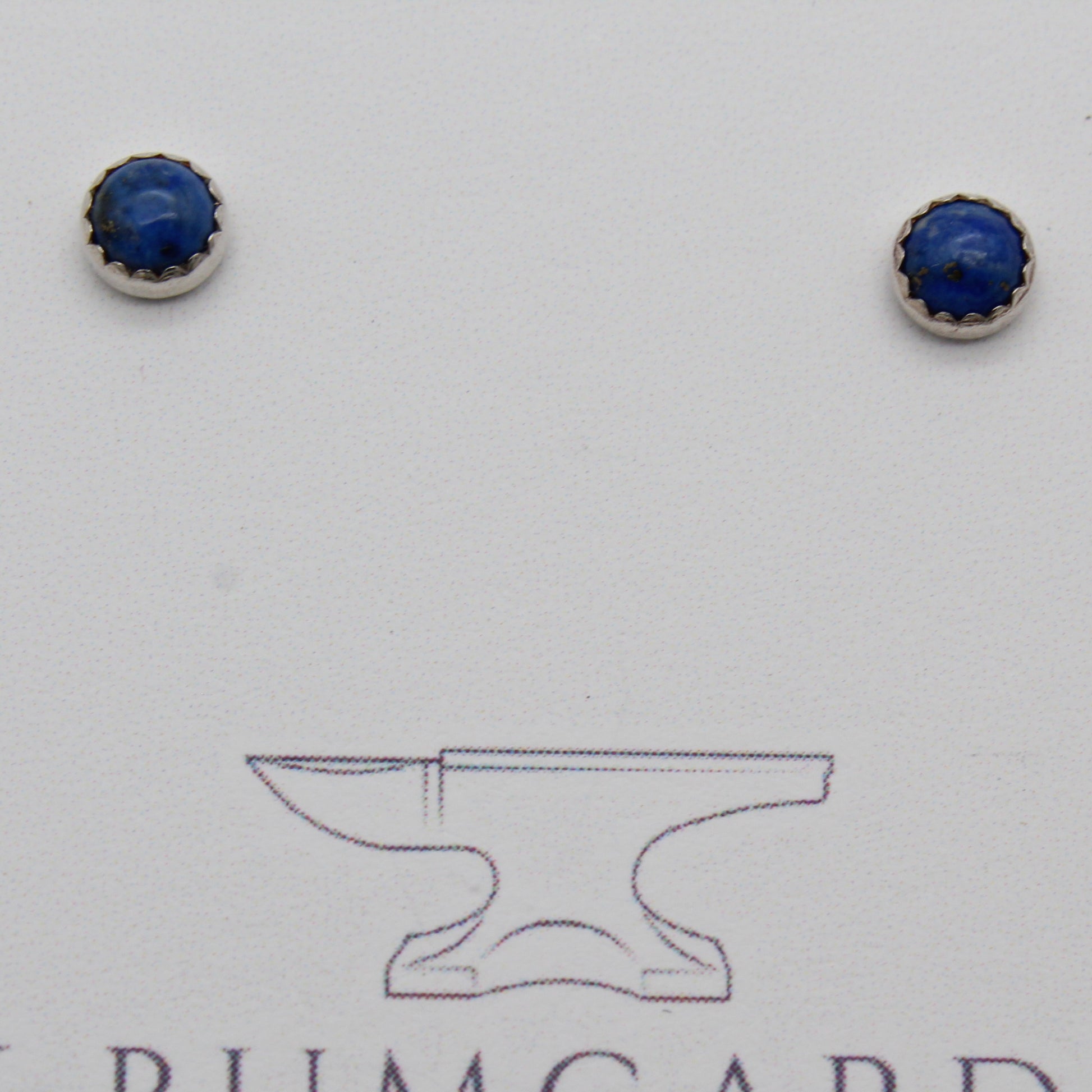 #3027 Denim Lapis Stud Earrings with Serrated Setting