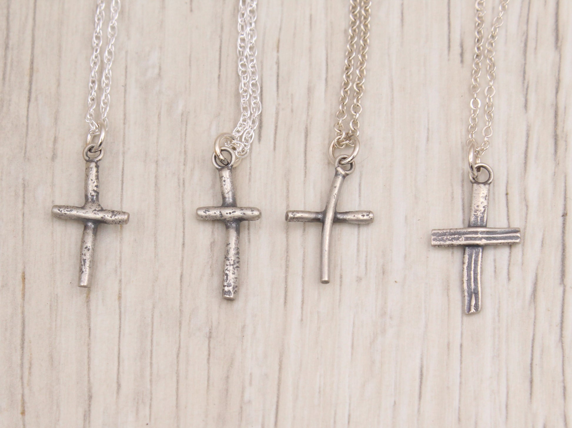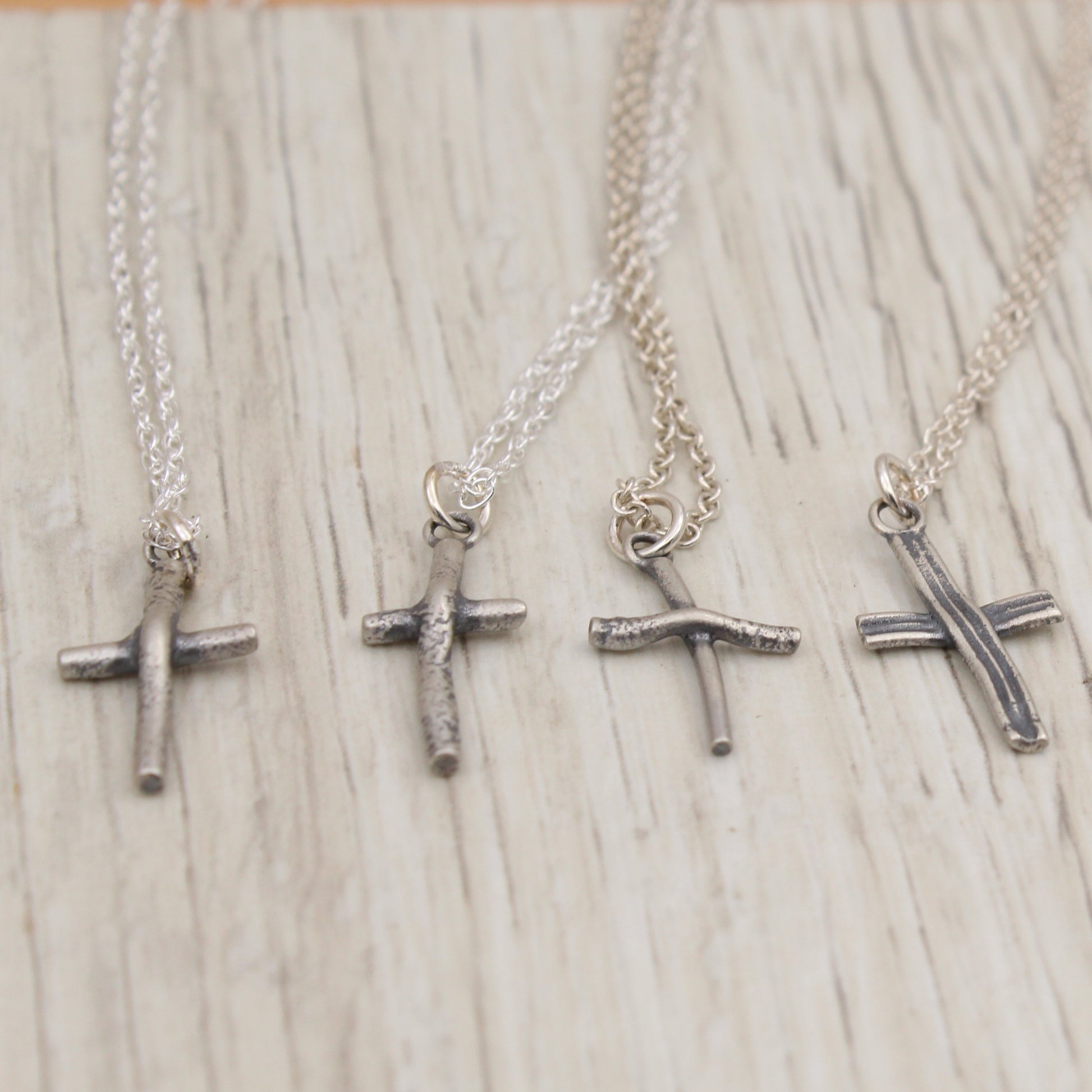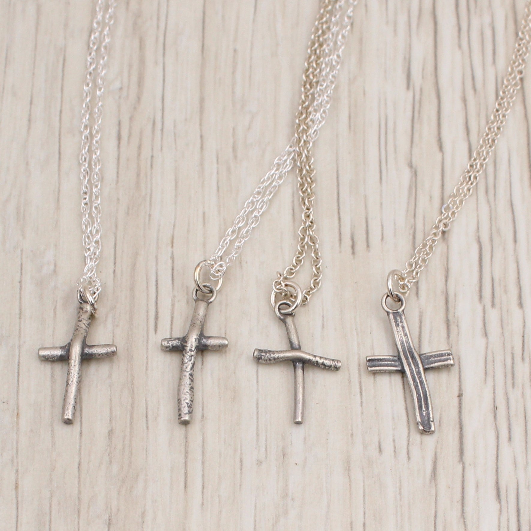 Each handmade sterling silver cross necklace is crafted from reclaimed scrap silver, offering a meaningful accessory that combines sustainability with timeless design. Choose your preferred style and wear a piece that reflects both elegance and eco-conscious craftsmanship.