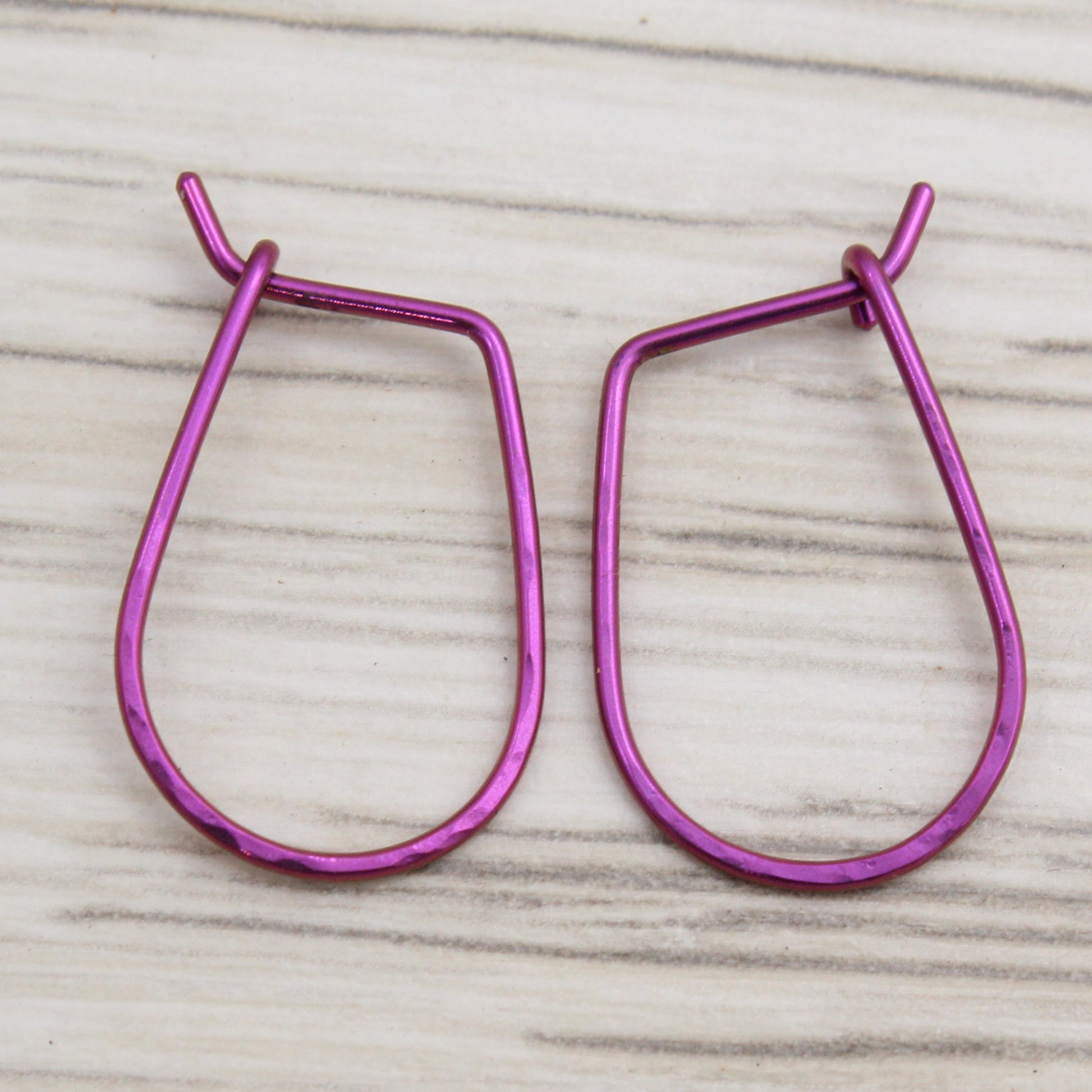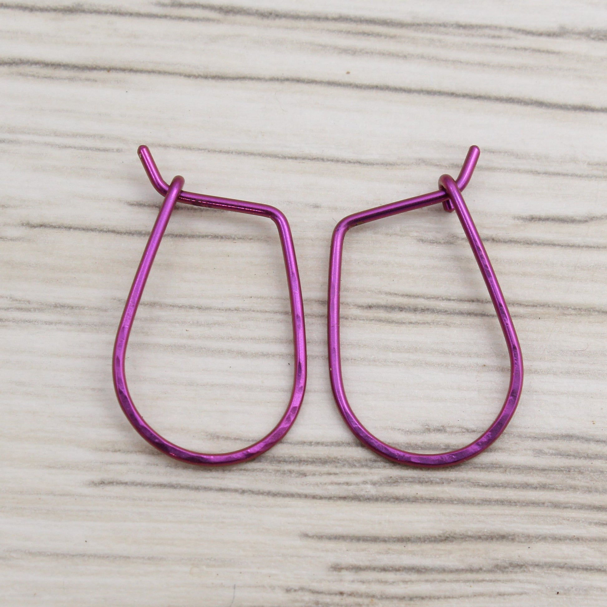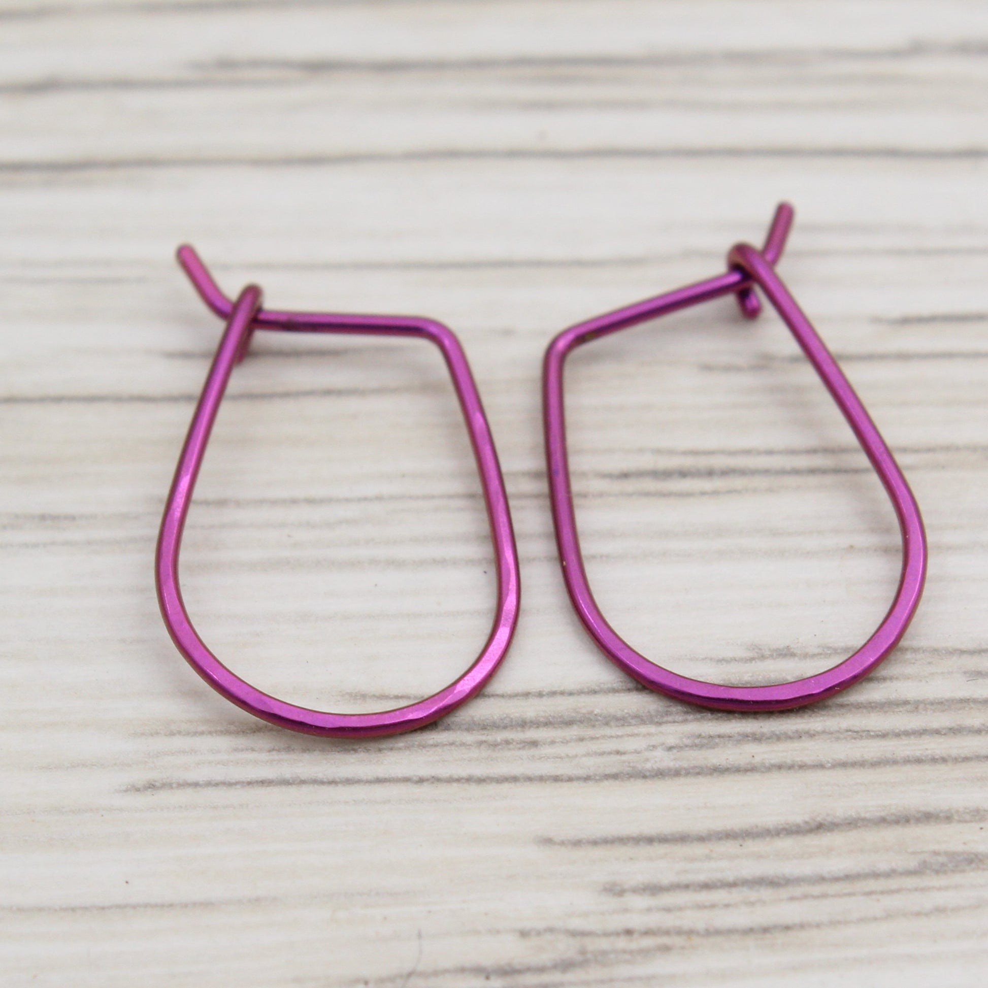 These handmade niobium hoops feature a unique hammered texture and are anodized to a rich dark pink hue. Lightweight and hypoallergenic, they offer both style and comfort for everyday wear. Their vibrant color and artisanal finish make them a standout accessory to brighten any outfit.