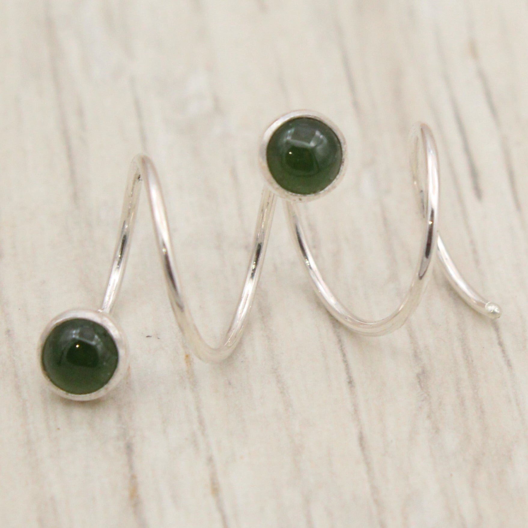 Introducing the Nephrite Jade Double Piercing Hoops! These hoops are made of sterling silver with fine silver settings and are designed for double piercings, giving you a one-of-a-kind and fashionable vibe. The 4mm nephrite jade stone adds a beautiful touch. Perfect for lobe piercings that are spaced 1/4" (~6-7mm) apart.